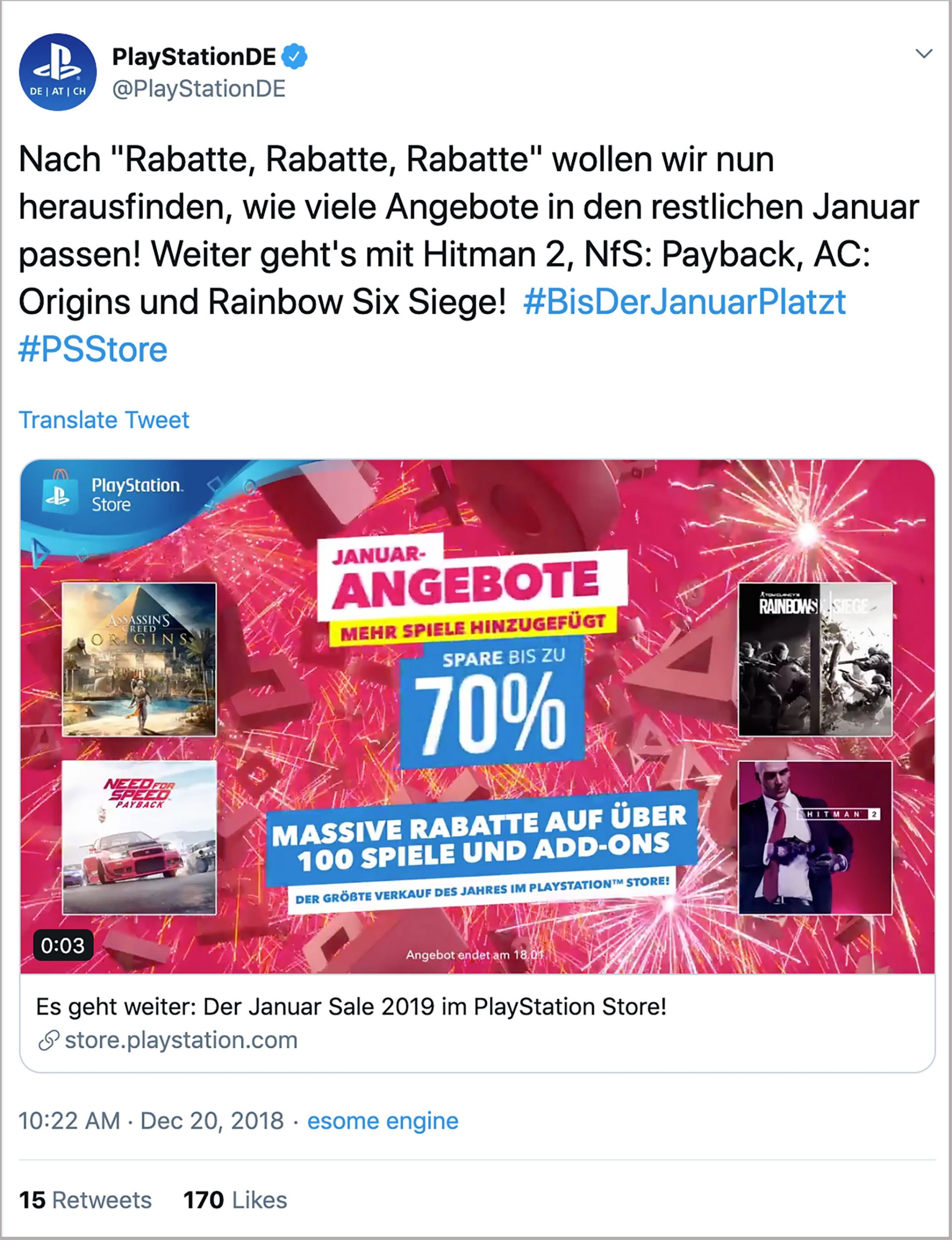 Und diese Zielgruppe tauscht sich auf Twitter über die wichtigsten Neuerscheinungen, epischsten Highlights ihrer beliebtesten E-Sport-Events und die neuesten Trends innerhalb der Branche aus. Hier vernetzen sich Gamer untereinander und interagieren mit ihren Lieblingsmarken.
