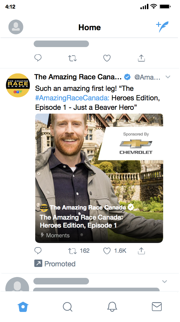 Tapping into the engaged fans from @AmazingRaceCDA, Sponsored Moments led to strong Tweet recall and message association.