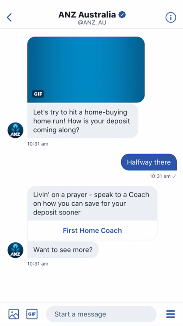 Twitter chatbots are a versatile tool for engaging your audience through a branded experience. By offering savings advice tailored to its customers’ goals, ANZ established itself as an authority on financial matters while launching in a unique way.
