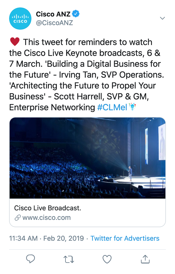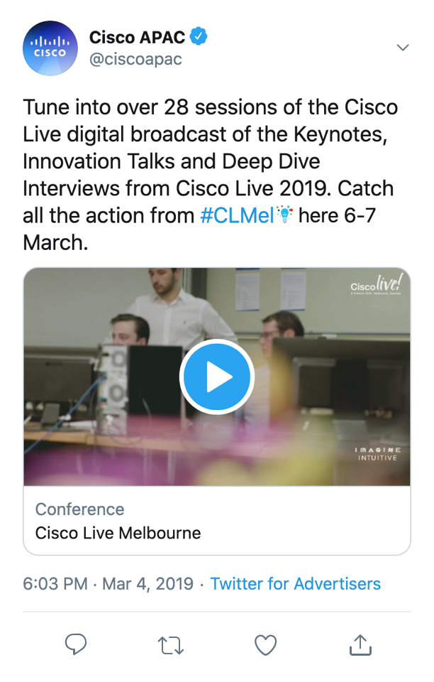 Leveraging on these key audience insights, Cisco decided to partner with Twitter for Cisco Live Melbourne 2019 to develop a campaign that had successfully reached the ITDMs community across APJC while simultaneously using the right formats with thumb-stopping power to engage them.