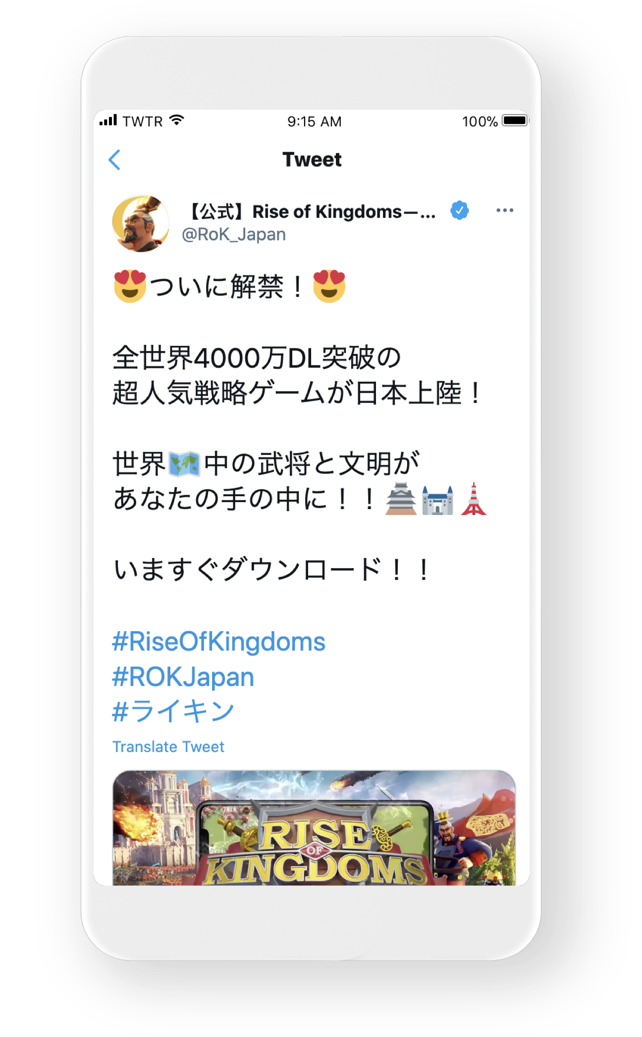 With the launch of Rise of Kingdoms (@RoK_Japan) scheduled for the Christmas season, Lilith Games saw an opportunity to partner with Twitter — Japan’s largest social community for mobile gaming — to crack a traditionally tough market for the strategy mobile game genre and gain new high-quality players.