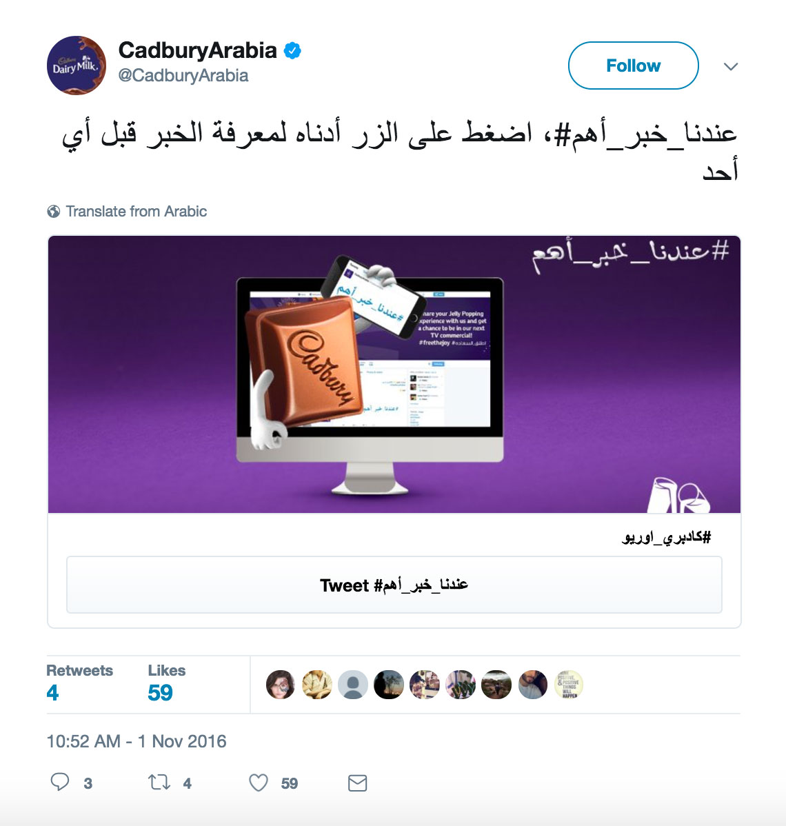 When Cadbury Arabia (@CadburyArabia) and Oreo (@Oreo) partnered to launch a new cookie-flavoured chocolate, the treat was an opportunity to grab headlines across the Middle East. @CadburyArabia turned to Twitter to create buzz, generate curiosity, and get people talking.