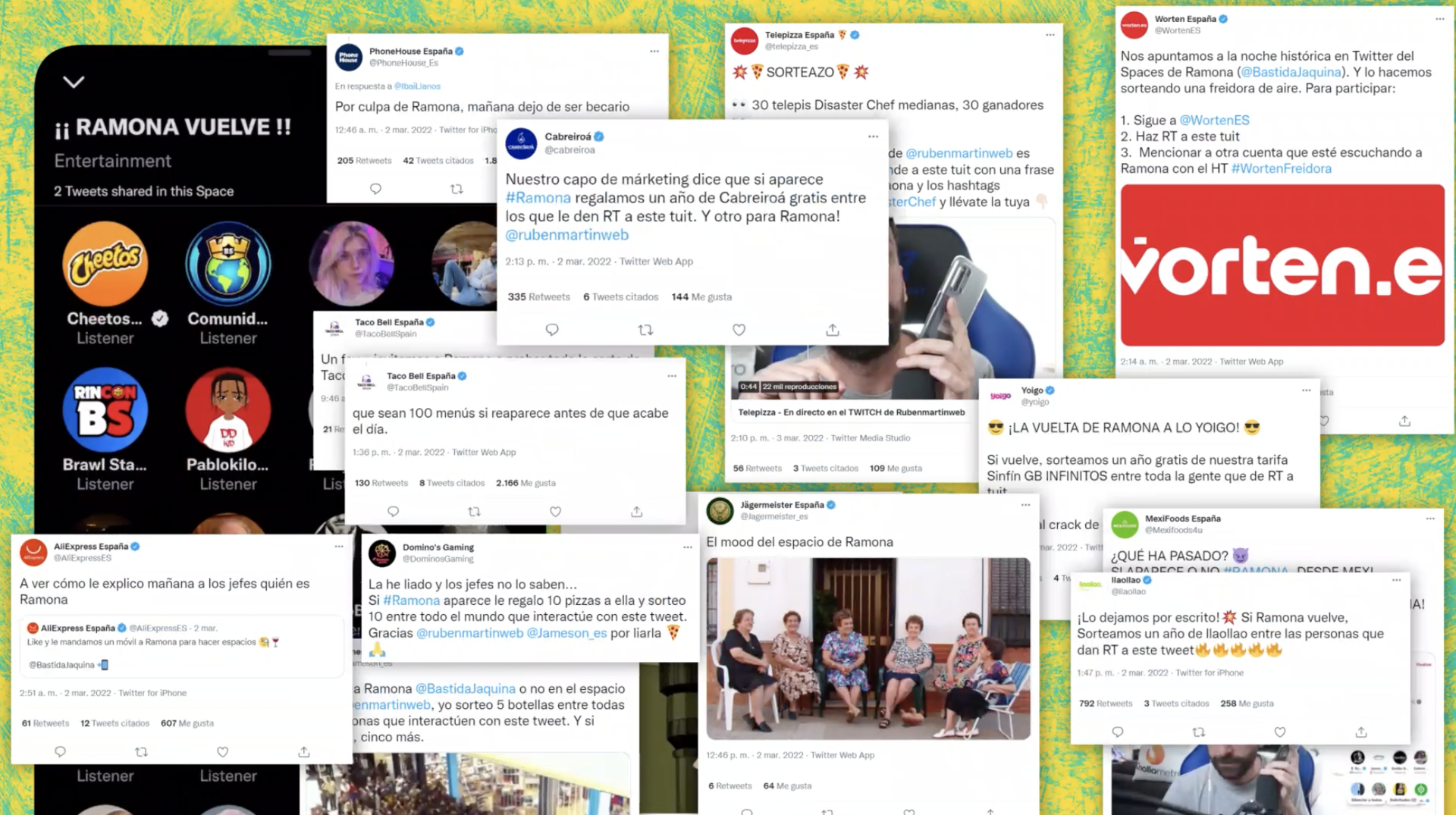 Un hito en la plataforma que aglutinó a los responsables de social media de diferentes marcas con el objetivo de encontrar a Ramona. El éxito del directo, en el novedoso formato Twitter Spaces, representa una nueva forma de mantener conversaciones de audio en directo en Twitter, con la profundidad y el poder que solo la voz puede aportar.