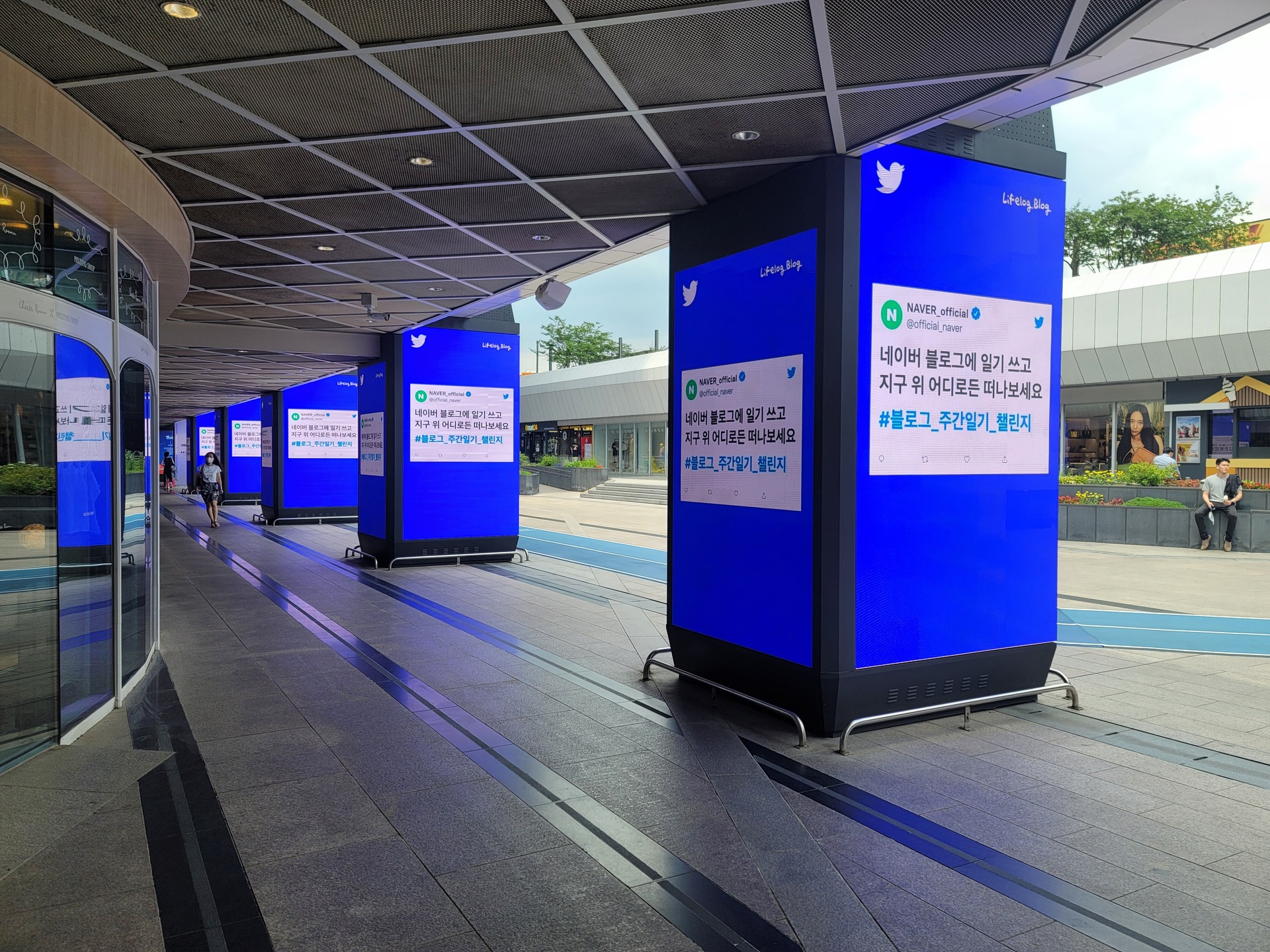 이 밖에도 네이버는 트위터의 디지털 옥외광고 패키지를 통해 젊은 층의 유동인구가 높은 코엑스 내외부 디지털 옥외광고를 동시에 집행하여 보다 높은 인게이지먼트를 기록할 수 있었습니다. 트위터의 디지털 옥외광고 패키지는 광고주의 캠페인 트윗을 강남역이나 코엑스의 옥외광고에 일주일간 노출함으로써, 광고주가 온라인 광고를 넘어 오프라인까지 아우르는 전방위적인 마케팅 활동을 펼쳐 캠페인의 인지도 및 참여를 보다 확대할 수 있도록 돕고 있습니다.